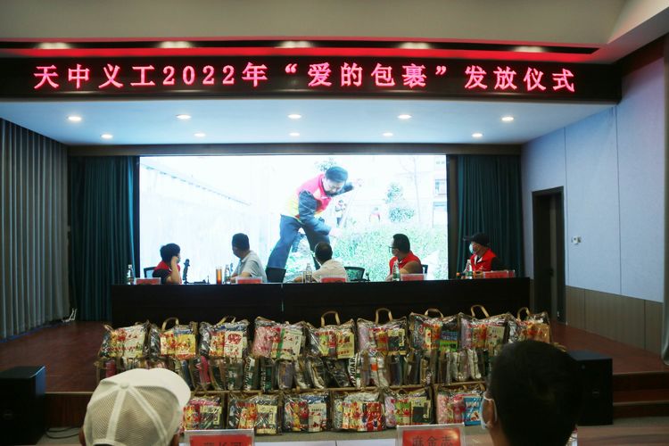 活动现场播放了天中义工联合会宣传片、介绍了“爱的包裹”项目。