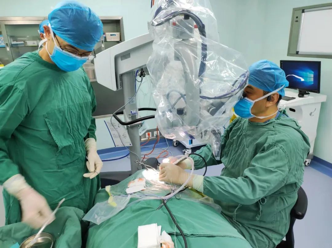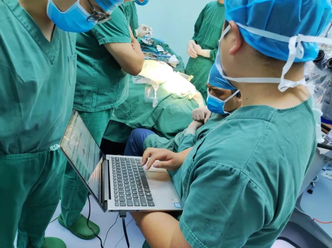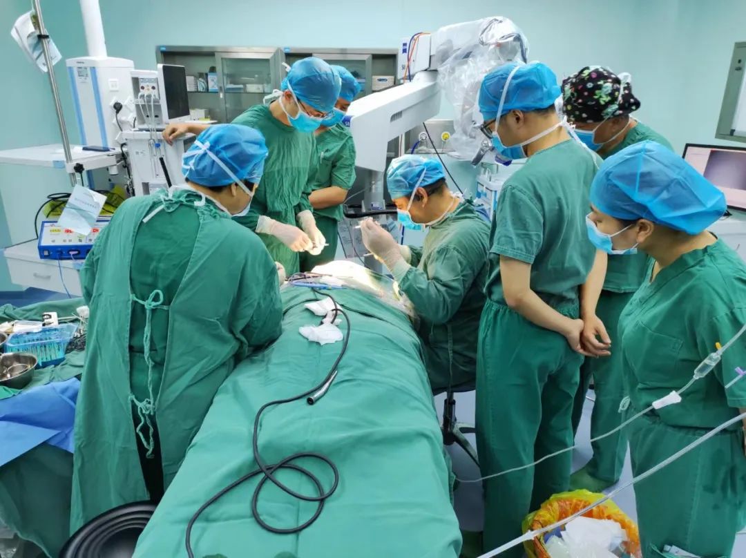 为确保手术的成功,驻马店广济医院耳鼻喉科、影像科、儿童康复科、手术室、麻醉科多学科联合,对患儿小雨进行听力学、影像学等相关检查以及心理学评估,并特别邀请河南省人民医院耳科刘军教授主刀实施此次人工耳蜗植入手术,6月11日上午,经过河南省人民医院刘军教授与驻马店广济医院耳鼻喉科马宏伟主任、陈军主任的精准操作,人工耳蜗装置被植入小雨的耳蜗内,经神经反应测试显示耳蜗植入成功,这也预示着驻马店市首例人工耳蜗植入手术成功实施。