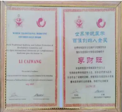 李财旺大夫现任:永济市李财旺中医诊所负责人,兼中科院中医药产业研究中心研究员、中科院荣誉教授、大国医药智库成员、世界传统医学会第55届金奖获得者、美国中医科学院研究员等。他出身于中医世家,从小拜多家名师为徒,曾担任过永济市鹏程新技术研究所所长、兼中科院高级研究员、中国未来研究会会员、特邀研究员、太行白求恩国际和平医院中西医门诊部特医主治医师。研究出了一套(增强人类再生功能治疗疑难病)的独家绝招,他用此创新疗法在治疗癌症及脉管炎方面夺得了多个世界第一,他的《关于中医药发展我的几点看法》一文,在第二届中医药发展论坛暨全国中医药品牌博览会上被评为一等奖,同时,他本人还被组委会授予《2007全国中医药继承与创新奖》两个奖项,虽然,李大夫头顶有多个光环,他身怀绝技,从94年至今,凡经他治疗达到半年的脉管炎患者全部都获得了治愈。2011年4月5日在运城河东广场召开的《全国中医中药中国行疑难病治疗周》期间,他公开征集经他治愈的脉管炎患者十年内复发者,保证免费治疗直到治愈,至今却无一人前来,充分说明,脉管炎经他治愈后一般是不会复发的。他在治疗癌症方面也成绩多多,他本村就治疗过六例,全部都达到了延长生命的目的,其中,有一家就治疗过三例,两例已健康的活过了九年了,现在还在享受着人间的幸福快乐。一例正在治疗中。还有一个肺癌患者西安医院说活不过四个月,在李大夫的治疗后,过了十年。因此,被运城朝阳岗益康门诊部院长聘为脉管炎专科主治医师,当他抱着满怀信心来到运城以后,才发现和他的想象完全不同,他人生地不熟办事实在难,为了让广大患者了解他,他在刊物和电视台同时做了广告几乎没有什么效果,难!难!他很难!难的是身获绝技无人问之,难的是力大无穷无处用之。为什么?因为,一,众所周知,国家级大医院对脉管炎的治疗都没有好办法,所以,再宣传都难解除人们的怀疑之心。就此问题我来谈谈自己的看法,人常说,好医生都在民间,为什么呢?因为,大医院的医生治病用的是标准方法,那个医院用的方法都基本一样。再说,对于医生本身来说,治好治不好工资都一样,治好了工资不能多拿,出了问题,责任得自己承担。试问,在这种情况下谁愿意尽职尽力来工作呢?谁愿意研究新方法为病人治病自己来承担风险呢?所以,疑难病在这个医院治不好,在那个医院也一样治不好。对民间医生来说就不一样了,由于,民间医生没有基本的工资保证,要生存就得拼搏!就得奋斗!就的学习!就得创新!就得化血本去挖掘民间散失的秘方、验方,就得大胆的去深入研究,先用动物做实验,进而用自己身体来做实验,亲身体会,总结、改进理论,再实践,再提高,只有这样才能得真知。总之,只有用理论指导实践,再用实践来检验理论,总结提高,才有攻克疑难病的可能,否则,尊规守旧,永远按标准方法办事,就永远不会提高!就永远不会前进!疑难病就永远还是疑难病。总之,好医生都在民间、大医院治不好的病民间医生能治好不是梦!总之,对于患者来说,不管哪个人只要能治好自己的病就是好医生。人常说,庙不在大,有神则灵,治病也和打仗一样,当年,国民党的正规军打不过共产党的游击队、美国的飞机加大炮打不过中国的小米加步枪就是明证。二、凡是有人群的地方都会有左中右三种,医生也是一样,有好的就会有次的,真正能攻克疑难病的好医生终究还是少数,所以,疑难病患者往往东跑西颠、求神拜佛,腿跑乏啦,心跑累啦,钱花光啦!所以,大多数人已失去了信心,即使真的神仙到了面前他们也不会相信。再说,还有医托更害人,运城第一时间就曾经报道过,有几个医托合起来骗患者的事例。所以,患者更难!人常说,一次被蛇咬,十次怕草绳,他们何止一次被蛇咬呢?有一位患者曾经说过,他六年来,陆续找过八位医生治疗,结果都不见有什么疗效,由次可见他们有多么难啊?